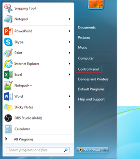 2. Click "Control Panel"